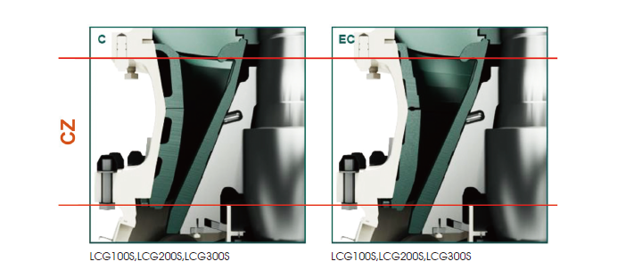 樂礦 LCG 系列圓錐破碎機可以針對不同的生產(chǎn)要求輕松調整腔型,通過選擇不同的破碎腔型,同一臺破碎機可用于破碎生產(chǎn)過程中的第2 段、第3 段或第4 段,以生產(chǎn)不同尺寸的最終產(chǎn)品。通過沖程更換功能可以輕松地對破碎機物料通過量進行調整,以便與其他破碎設備的運轉相協(xié)調。LCG 系列圓錐破碎機廣泛的適用性得益于同一主機結構可以通過更換襯板來獲得不同破碎腔型,因而能夠根據(jù)破碎流程的變化來調整破碎機的腔型,適用性更廣。