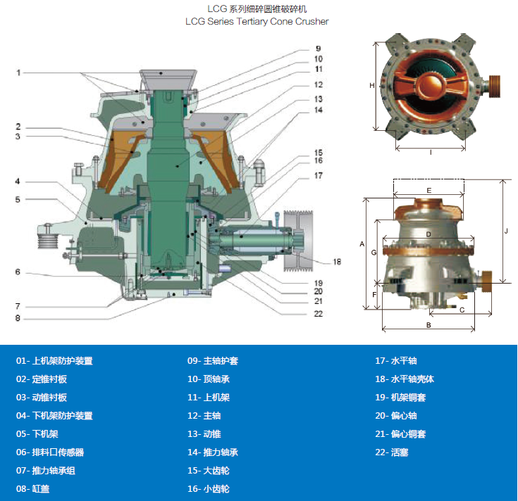 樂礦LCG 系列圓錐破碎機代表了先進的破碎機技術,破碎效率更高,生產(chǎn)成本更低,破碎產(chǎn)品質量更優(yōu)秀,能夠充分適應各種破碎工況,即便是極其堅硬的巖石也能夠應付自如。對于石料或礦山行業(yè),要求破碎設備產(chǎn)量高、產(chǎn)品粒型優(yōu)良、機動性好,LCG 系列圓錐破碎機不但能夠滿足這些要求,而且能夠使破碎流程更加順暢,實現(xiàn)破碎流程的全自動化。LCG- S 系列中碎圓錐破碎機有3 種標準機型,可配置出6 種不同的破碎腔型;LCG 系列細碎圓錐破碎機有5 種標準機型,可配置出20 余種不同的破碎腔型。